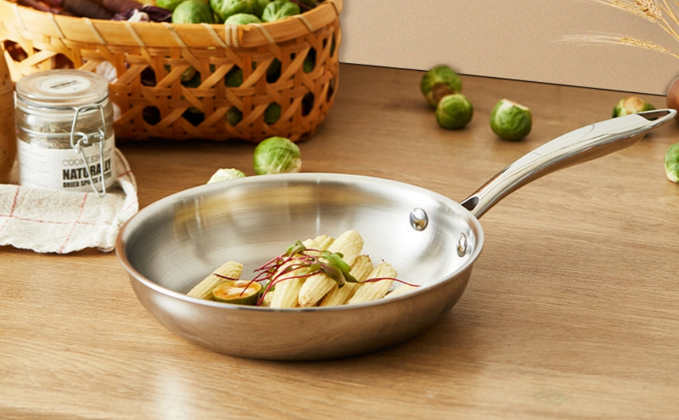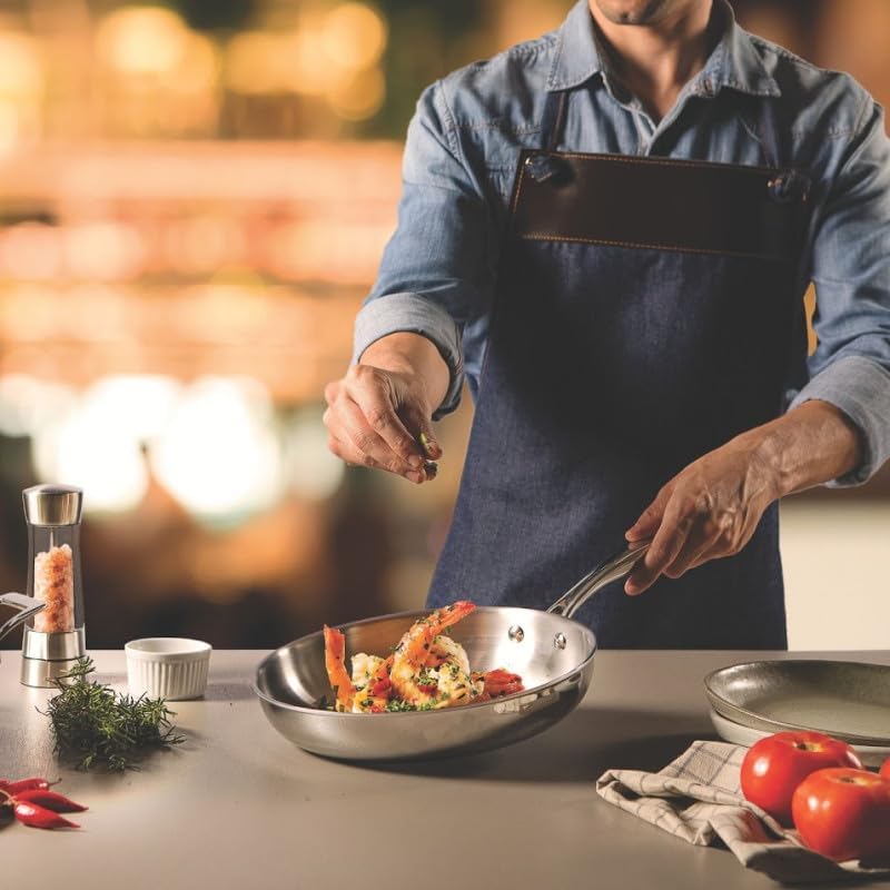 De slimme tri-ply constructie verspreidt warmte razendsnel en gelijkmatig, voor sappig vlees, knapperige groenten en perfecte sauzen – elke keer weer.